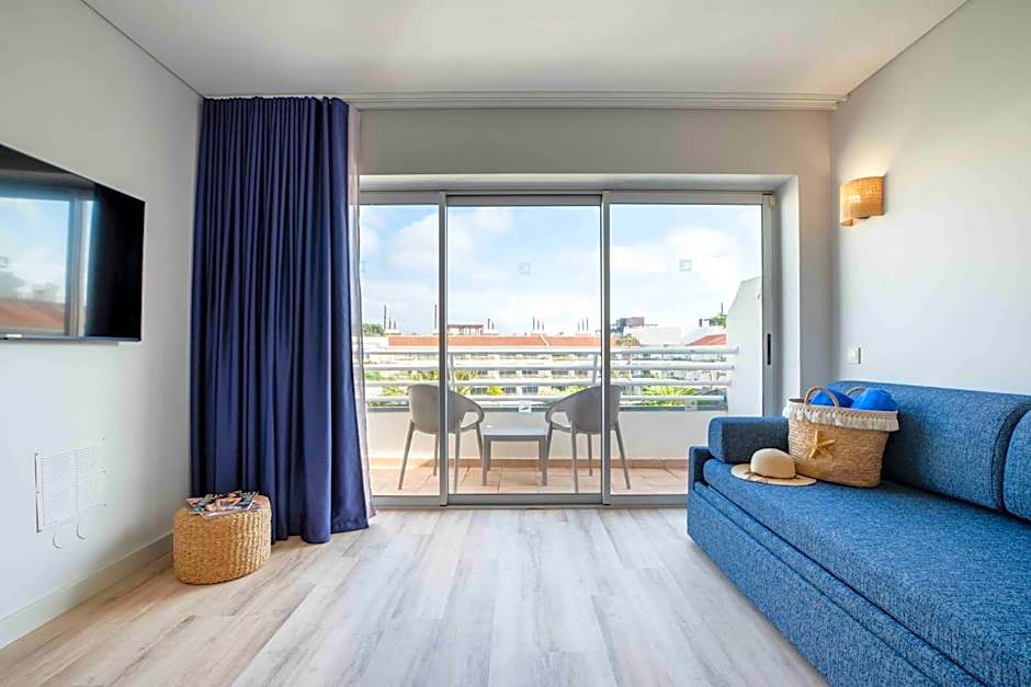 This modern apartment has 1 bedroom with a double bed. The living area has a sofa bed. All apartments have a balcony with pool views.There is a kitchenette and a dining area.